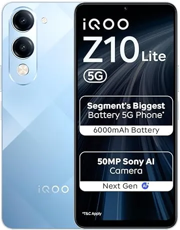 iQOO Z10 Lite 5G (Titanium Blue, 4GB RAM, 128GB Storage) | 6000 mAh Battery | Dimensity 6300 5G Processor with 433K+* AnTuTu Score | IP64 Rated & Military Grade Shock-Resistance*