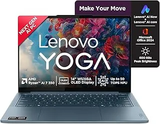 Lenovo Yoga Slim 7 AMD Ryzen AI 7 350, Copilot+ AI PC(32GB RAM/1TB SSD/14″(35.5cm)WUXGA OLED/AI Now/50 TOPS/Windows 11/Office Home 2024/Backlit Keyboard/1Yr ADP Free/Teal/1.19Kg), 83JY005YIN AI Laptop