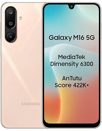 Samsung Galaxy M16 5G (Blush Pink, 4GB RAM, 128 GB Storage) | MediaTek Dimensity 6300 | AnTuTu Score 422K+ | Super Amoled Display | AI | 25W Fast Charging | 6 Gen of OS Upgrades | Without Charger